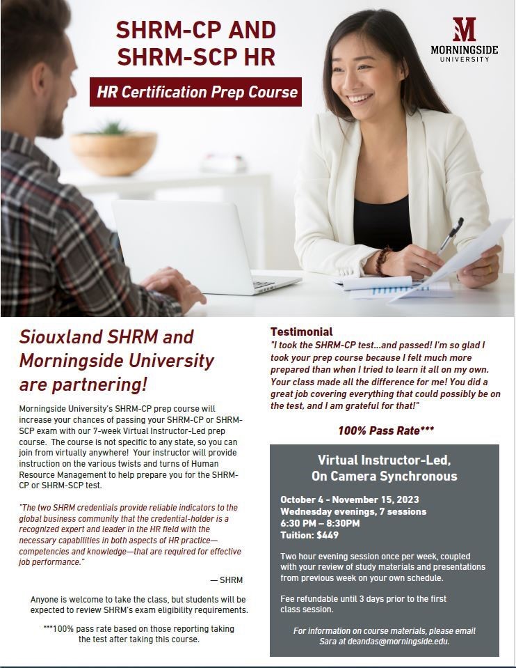 The University of Sioux Falls' SHRM Certification Prep+ is now available for remote learners!